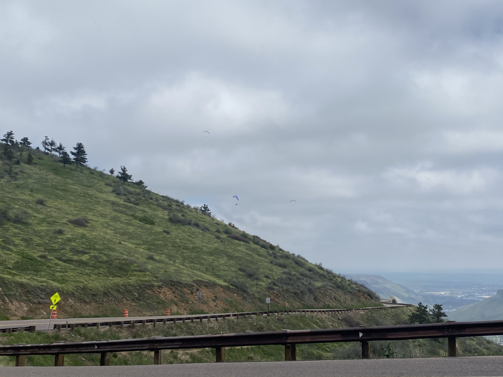 The day was somewhat stormy but also quite active. Paragliders took off from Lookout Mountain, flying over the town.