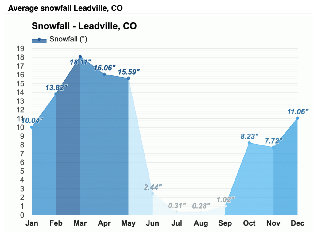 At higher elevations it snows quite a bit during springtime (Leadville is 10,200 feet (3.1km) above sea level), even as the snow melts into mud on most trails. It is probably the most inactive time of year in the mountains.