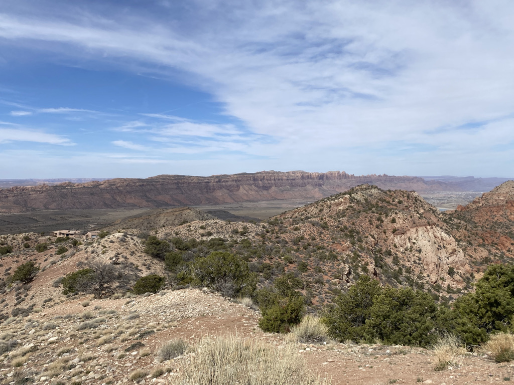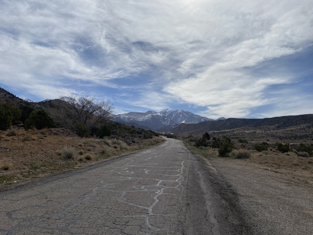 Trusting my instincts, I decided to start the day headed South out of town. The climbing starts immediately, headed towards a development area called Spanish Valley.