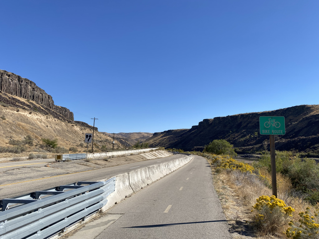 Luckily, the last few miles of the highway have a bike trail, which connects back into town.